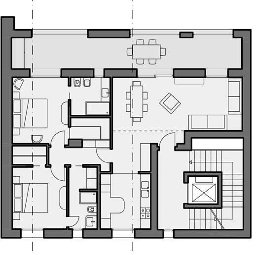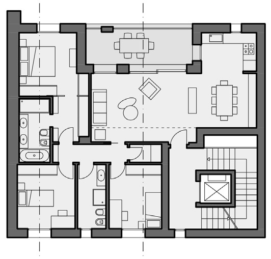 Le aperture slittano lievemente le une rispetto alle altre, donando dinamismo alla composizione e contemporaneamente mantenendo una trama ordinata. Infine, l’avanzamento o l’arretramento dei fili facciata garantisce, mediante l’inserimento di tre logge e di un corpo aggettante, un carattere di profondità alle facciate. Grazie all’adozione delle più avanzate tecnologie per ridurre il consumo di energie non rinnovabili, Lnd11 è stato premiato come Nearly Zero Energy Building. Lo studio maniacale dei dettagli tecnologici dell’involucro ha permesso di ridurre al minimo le dispersioni energetiche e mantenere la continuità degli isolamenti in tutti i nodi costruttivi. Le scelte impiantistiche di ultima generazione, hanno contribuito a realizzare un convincente connubio tra architettura e tecnologia al servizio di un abitare urbano smart.