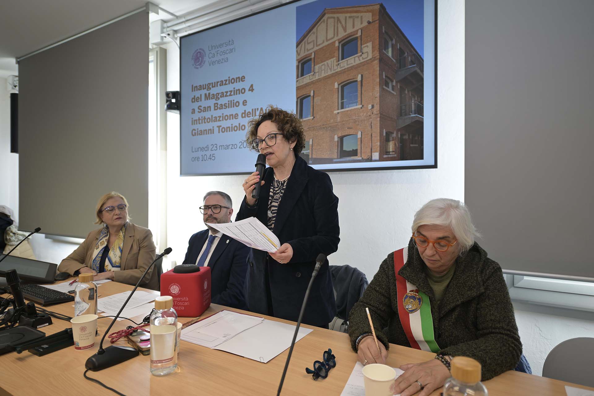 Durante l’inaugurazione è stata intitolata l’Aula 2N al professor Gianni Toniolo (1942‑2022), economista di fama internazionale, laureato e poi docente a Ca’ Foscari.