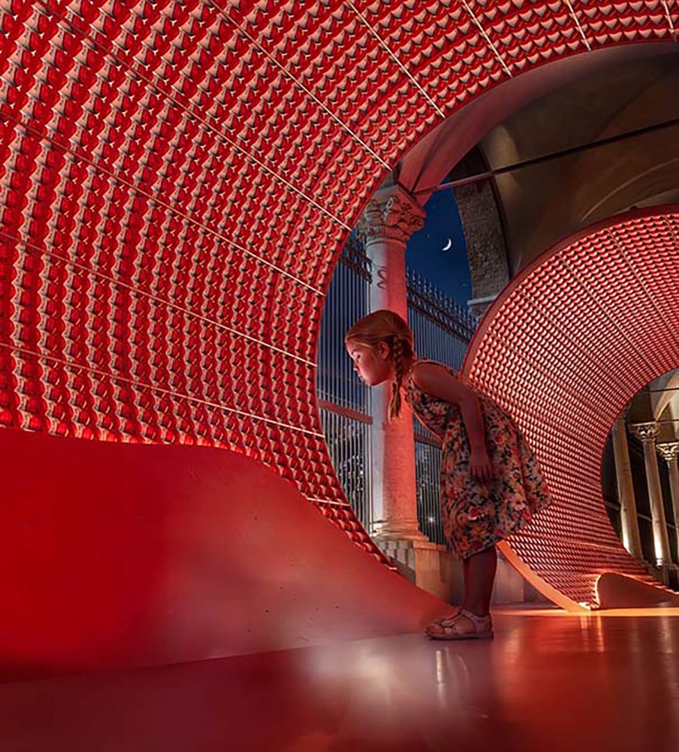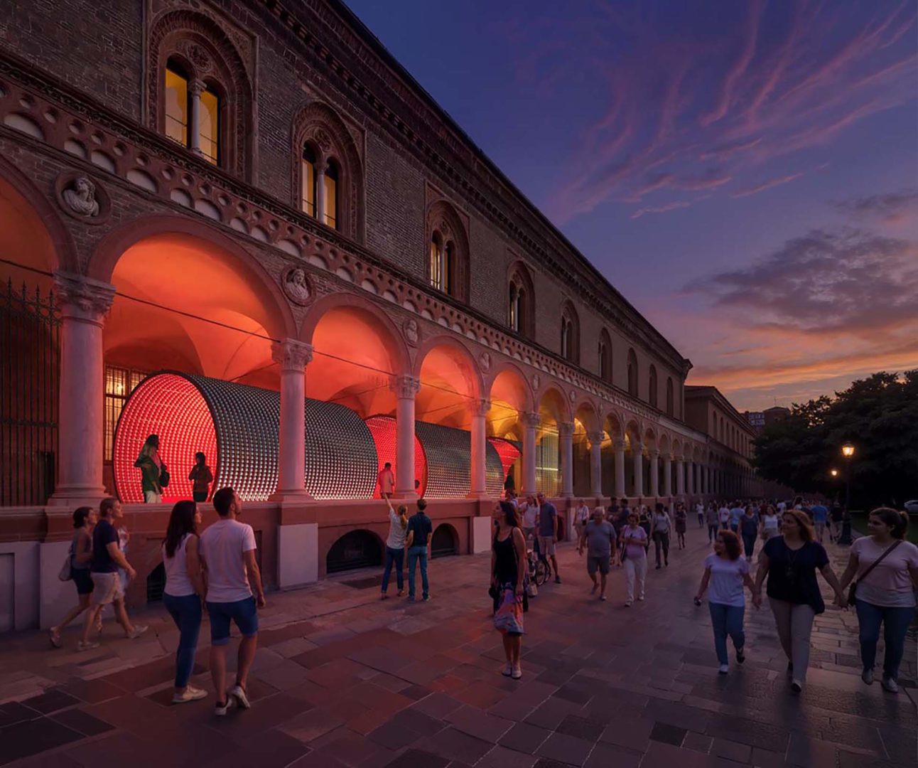 Ospitata sotto il Portico Richini dell’Università degli Studi di Milano, House of Polpa celebra i 55 anni della Polpa di pomodoro Mutti trasformando 20.000 lattine in un’installazione architettonica temporanea.
