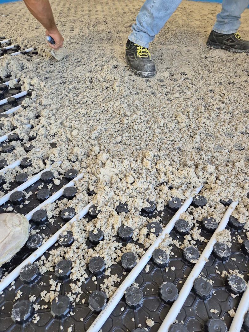 Per supportare l’impianto di riscaldamento e raffrescamento a pavimento è stato scelto Paris 2.0, il massetto radiante fibrorinforzato ad alta conducibilità termica di Laterlite, certificato Cam e progettato per ottimizzare le prestazioni degli impianti radianti.