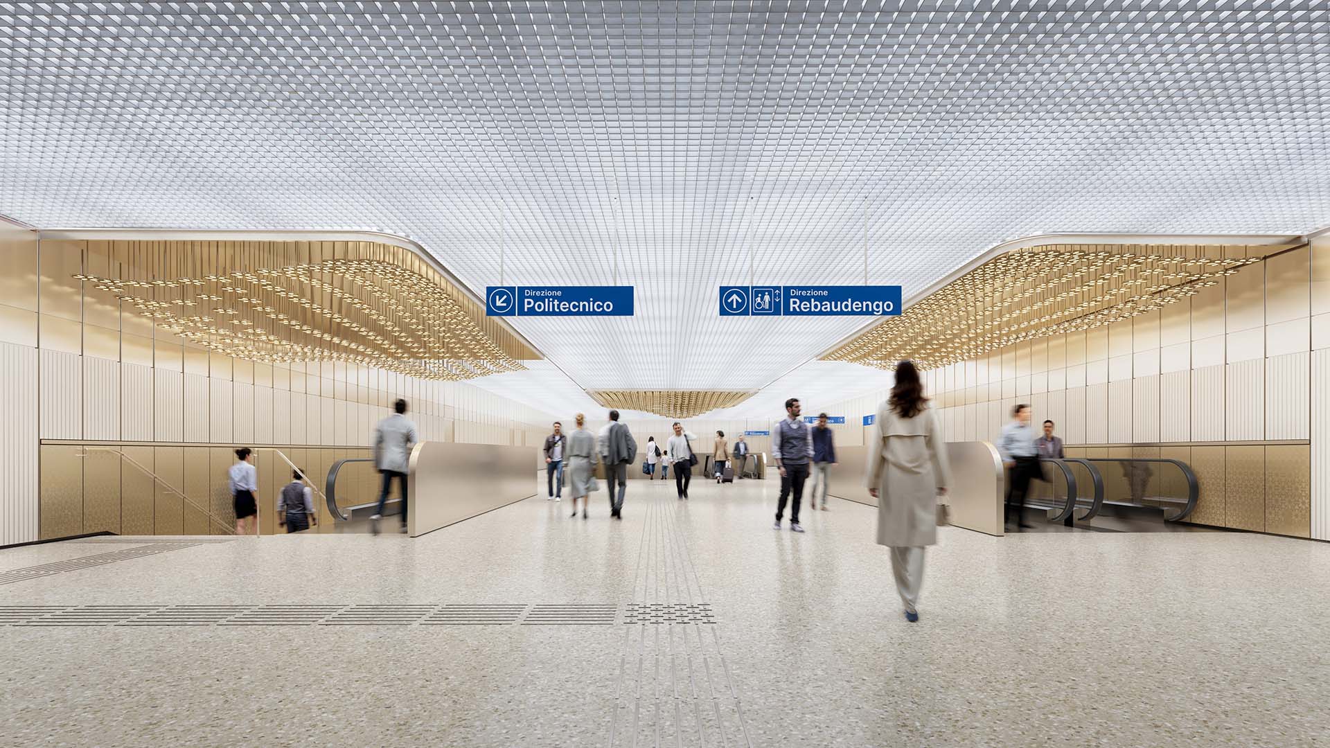 Qui sorgerà anche il Teatro delle Residenze, uno spazio flessibile dedicato a talk, panel ed eventi performativi. Grazie al Protocollo d’Intesa con le Residenze Reali Sabaude, la stazione sarà collegata direttamente agli ambienti sotterranei monumentali di Palazzo Carignano, secondo il modello delle stazioni d’arte già sperimentato in città come Atene, Roma e Napoli.