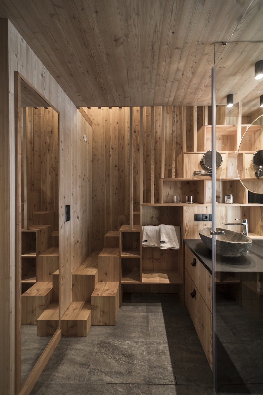 Abbiamo lavorato insieme nello studio per circa due anni, di cui l’ultimo, nel 2010, abbiamo iniziato a progettare la mia abitazione. Dopo quell’esperienza ci siamo detti che era il caso di tornare a casa e aprire un ufficio insieme a Bolzano, da dove veniamo entrambi. Così è nata la nostra avventura: a settembre 2010 eravamo già in Alto Adige per gettare le basi di quello che sarebbe diventato lo studio noa*. Uno dei primi clienti è stato mio zio, che ci ha dato la possibilità di portare a termine il nostro primo hotel, il «Valentinerhof», concluso nel 2011. Si tratta di un progetto di circa 3 milioni e mezzo, con 14 camere e una wellness, per cui abbiamo vinto quello che si chiamava lo Sleep Award, ovvero il premio londinese dell’hospitality, nella categoria ampliamento di un albergo esistente. Lo spingere sugli Awards e sul marketing è molto importante per noi e deriva sia dall’approccio londinese di Lukas sia da quello di Matteo Thun. È una strategia che ci ha dato la spinta per nuovi progetti.
