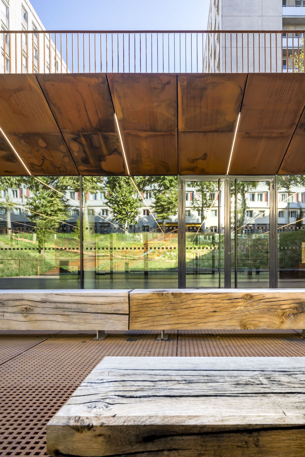 La riqualificazione sfrutta al meglio il patrimonio parigino, grazie a un approccio conservativo che ha mantenuto per quanto possibile gli spazi esistenti e ha preservato il carattere storico del sito. ChartierDalix ha adattato il progetto agli edifici esistenti, e non viceversa. Le nuove attività non cancellano il passato: la piazza d’armi conserva il suo ruolo centrale, unificante e simbolico, trasformandosi in un cortile paesaggistico inclinato verso il basso per inquadrare il nuovo accesso alla galleria e all’auditorium. Mentre le 27 aule per l’insegnamento e lo studio sono inserite negli edifici fuori terra, per sfruttare al massimo le loro originarie qualità spaziali, come le grandi altezze dei soffitti e la presenza di materiali nobili.