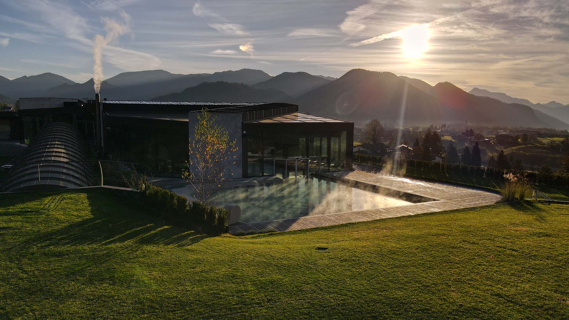 Riscaldata tra 31°C e 34°C, la vasca sembra fondersi con l’orizzonte delle Dolomiti di Brenta. Accanto, una nuova area relax panoramica amplifica il senso di quiete bucolica, trasformando ogni immersione in un rituale di rigenerazione.