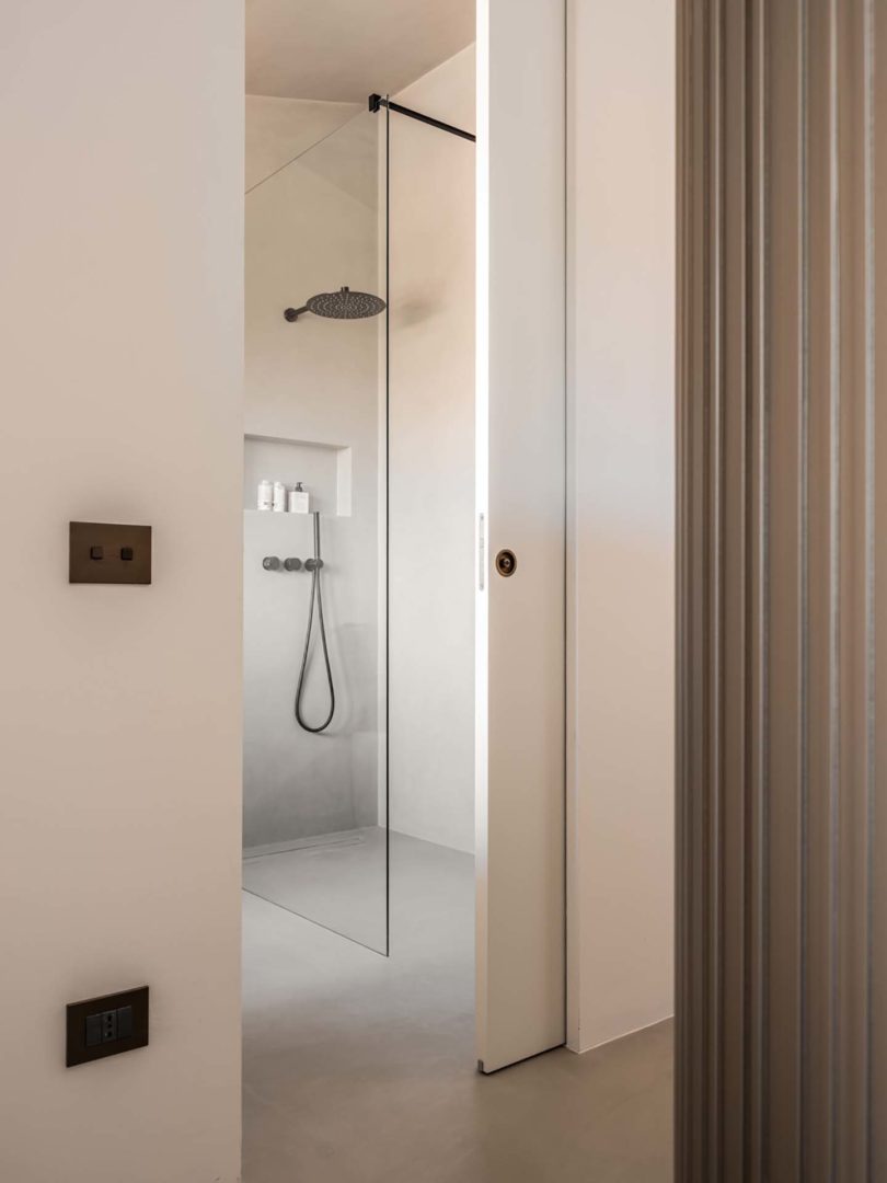 La loro presenza discreta è quasi impercettibile: i varchi appaiono come superfici continue e pulite, prive di stipiti e cornici.
