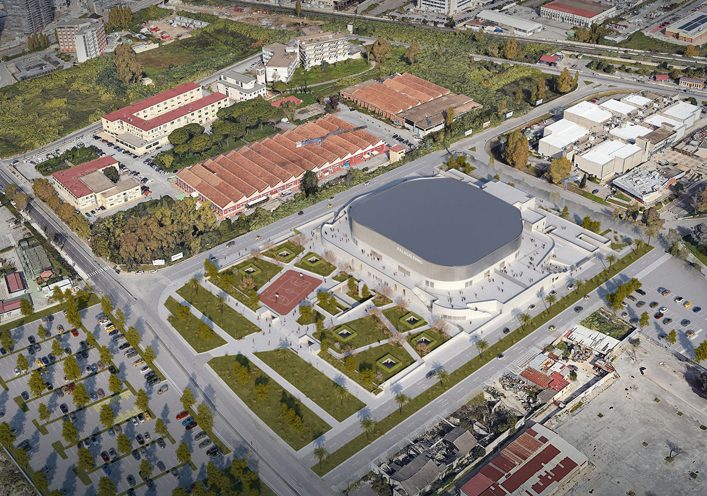 Accanto all’Arena sorgerà un edificio destinato a ospitare funzioni complementari, mentre nell’ex area denominata Palapark sarà realizzato un parcheggio a raso.