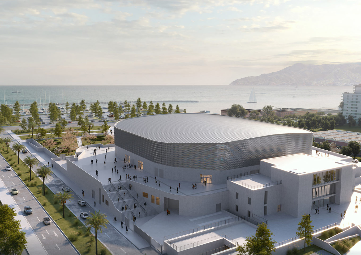 Abbiamo immaginato l’Arena di Salerno come un’architettura simbolica e funzionale: nuovo landmark urbano dove la sostenibilità ambientale e l’esperienza del pubblico sono imprescindibili. La forma, i materiali e la disposizione degli ambienti nascono dall’idea di inclusività e apertura: uno spazio vivo, accessibile, pensato per accogliere eventi di alto profilo ma anche per essere vissuto ogni giorno da atleti, studenti, famiglie.