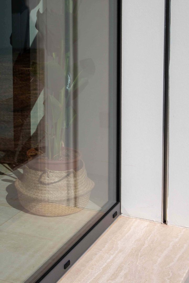 I serramenti, installati a scomparsa e caratterizzati da profili ridotti, accentuano la purezza delle linee architettoniche, conferendo all’edificio un senso di essenzialità e leggerezza.