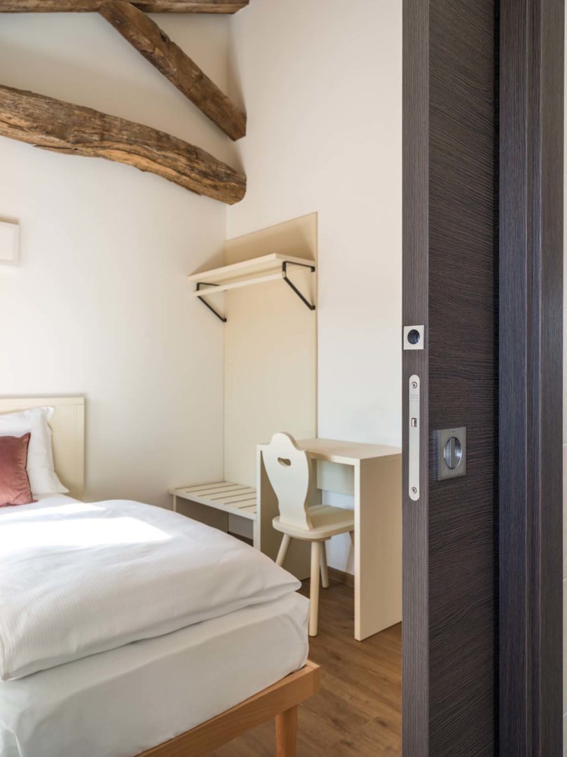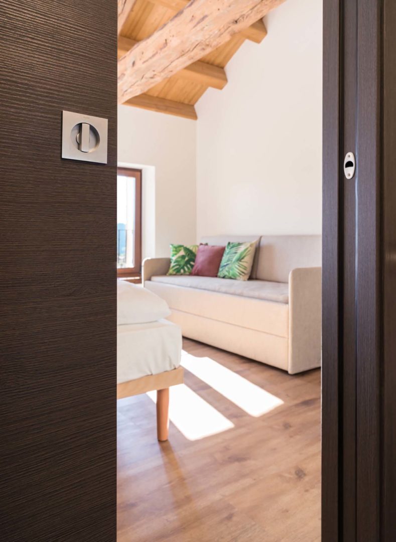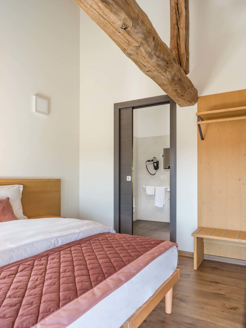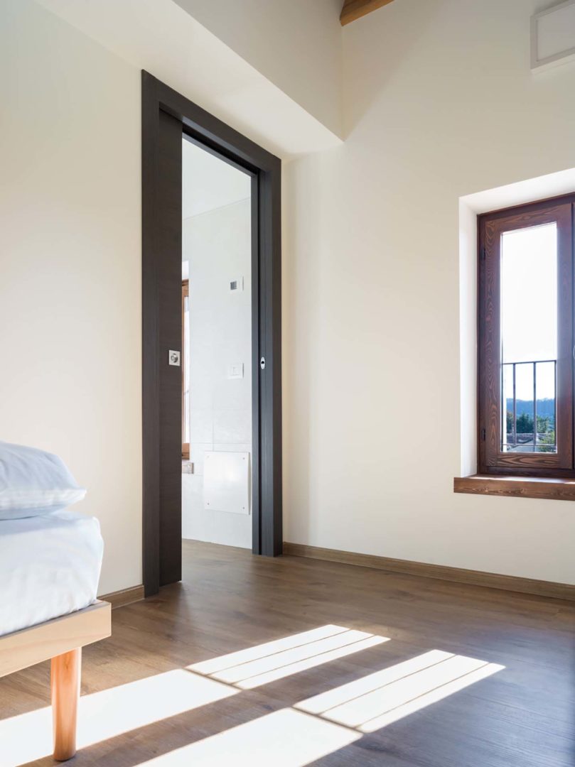L’integrazione dei sistemi scorrevoli ha permesso una distribuzione più efficiente delle stanze, un aspetto cruciale in una struttura ricettiva.