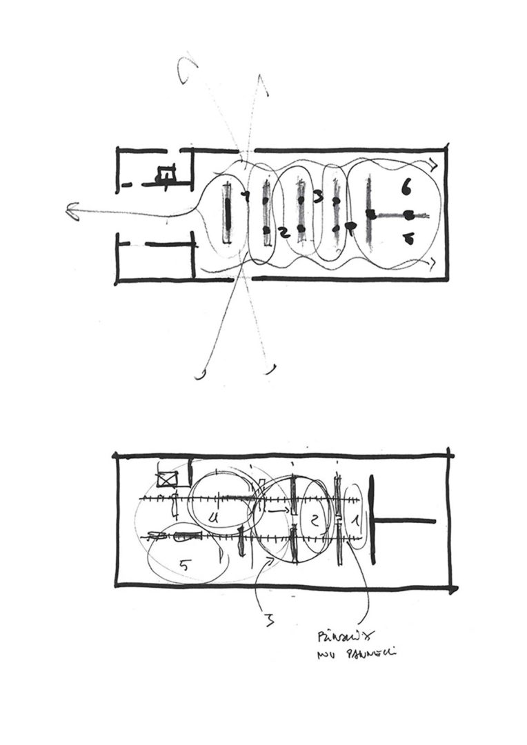Abbiamo avuto l’opportunità di collaborare direttamente con Michelangelo Antonioni nel 2006. In occasione dell’allestimento delle sue opere pittoriche nella mostra Il Silenzio a Colori al Tempio di Adriano di Roma. Per il maestro, il modo in cui si attaccava il quadro era importante quanto il quadro stesso. Questa devozione per il particolare come per l’insieme, per ciò che è di fronte e dietro la telecamera, è quello che abbiamo voluto tradurre in architettura.