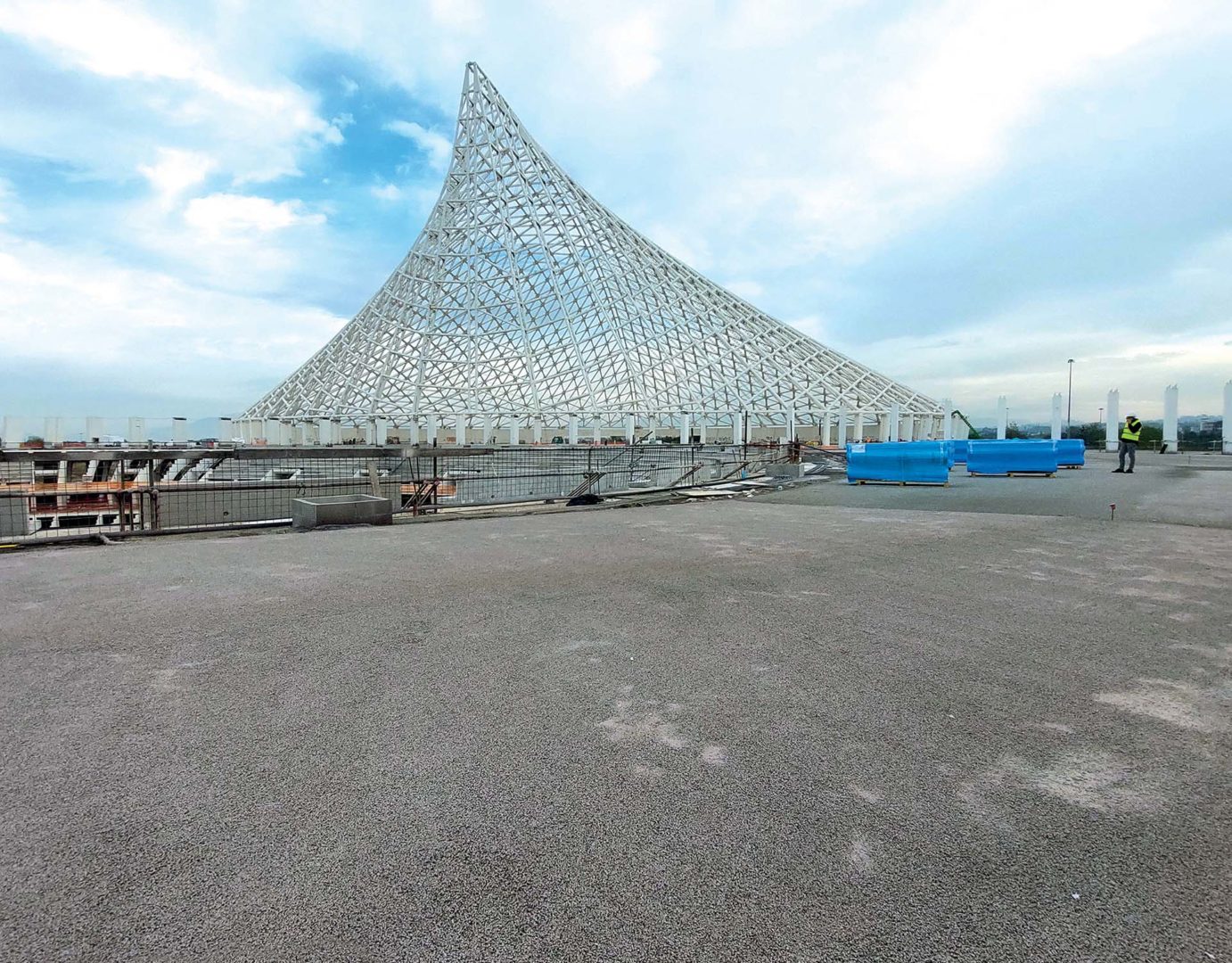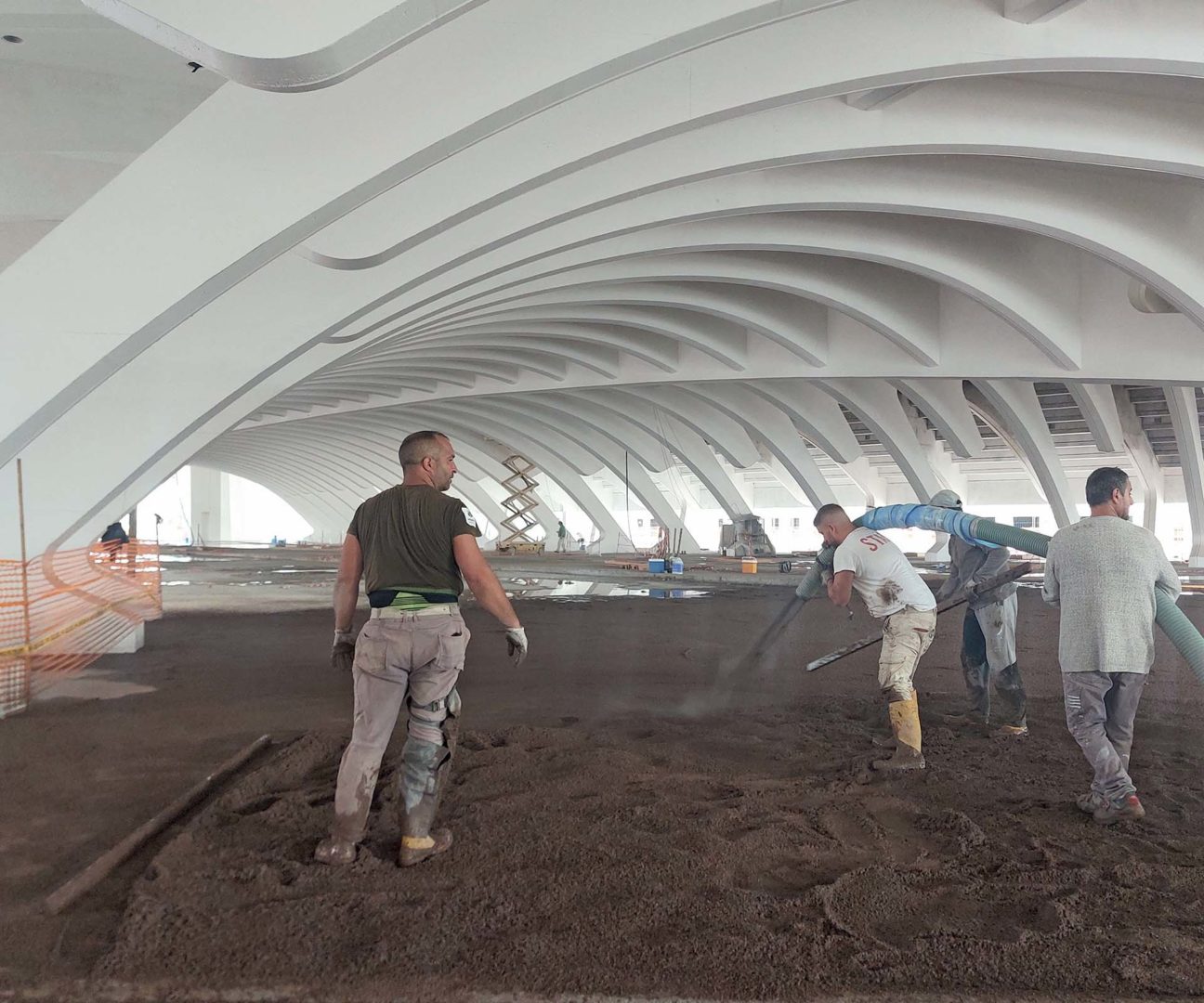L’argilla espansa pompata in opera ha permesso di realizzare pendenze leggere su vaste superfici in tempi rapidi, riducendo il carico sulle strutture esistenti e garantendo la compatibilità con le geometrie variabili della Vela.