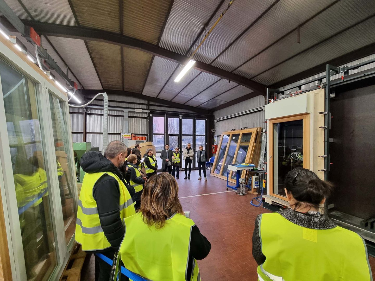 La giornata si è conclusa nel reparto tecnico e R&S, dove è installato il banco per i test Aria-Acqua-Vento necessari alla marcatura Ce di finestre, portefinestre e portoncini secondo il regolamento europeo 305/11.