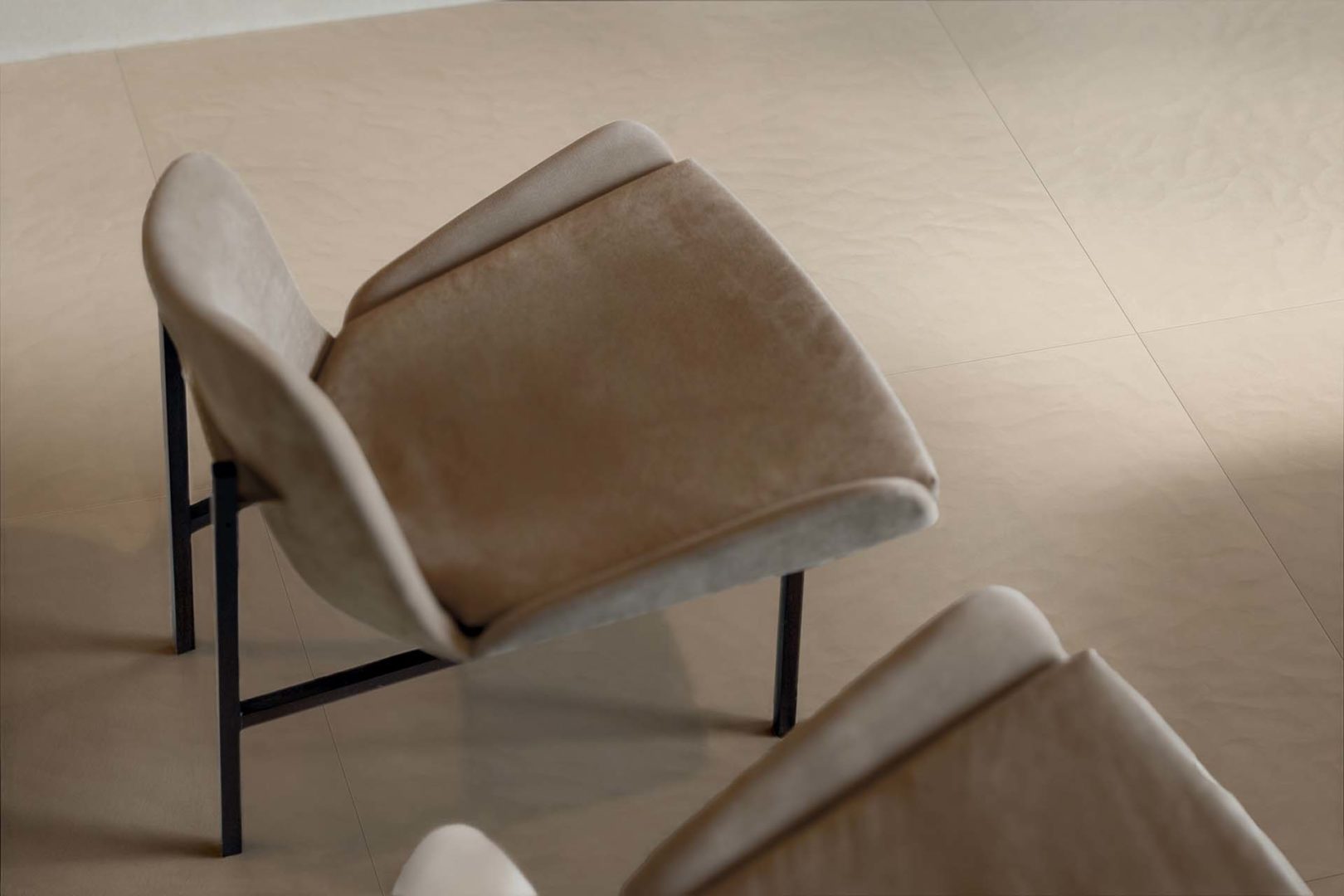 Attraverso la densità del gres porcellanato, questi riferimenti diventano pattern leggeri e impalpabili, capaci di evocare la delicatezza del mondo vegetale pur mantenendo la solidità della materia ceramica.