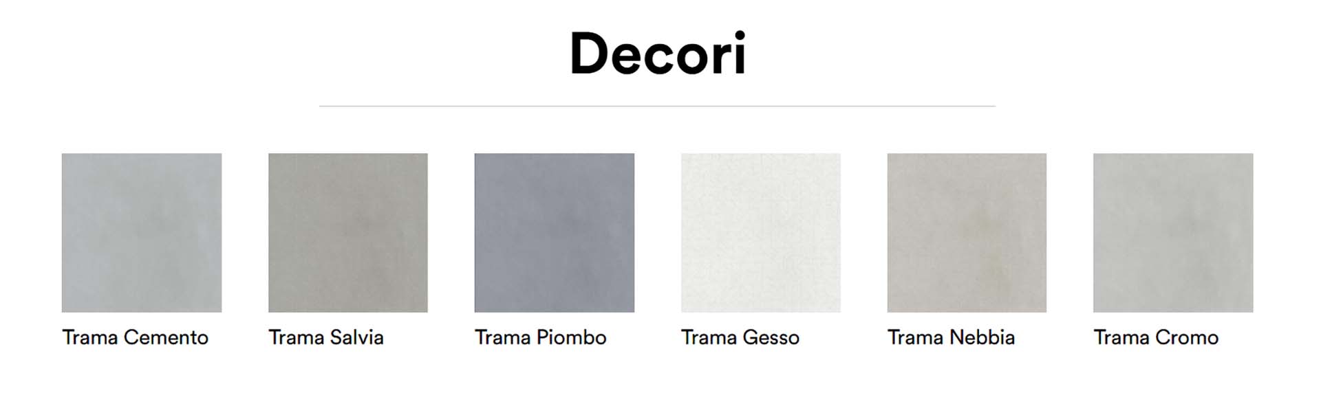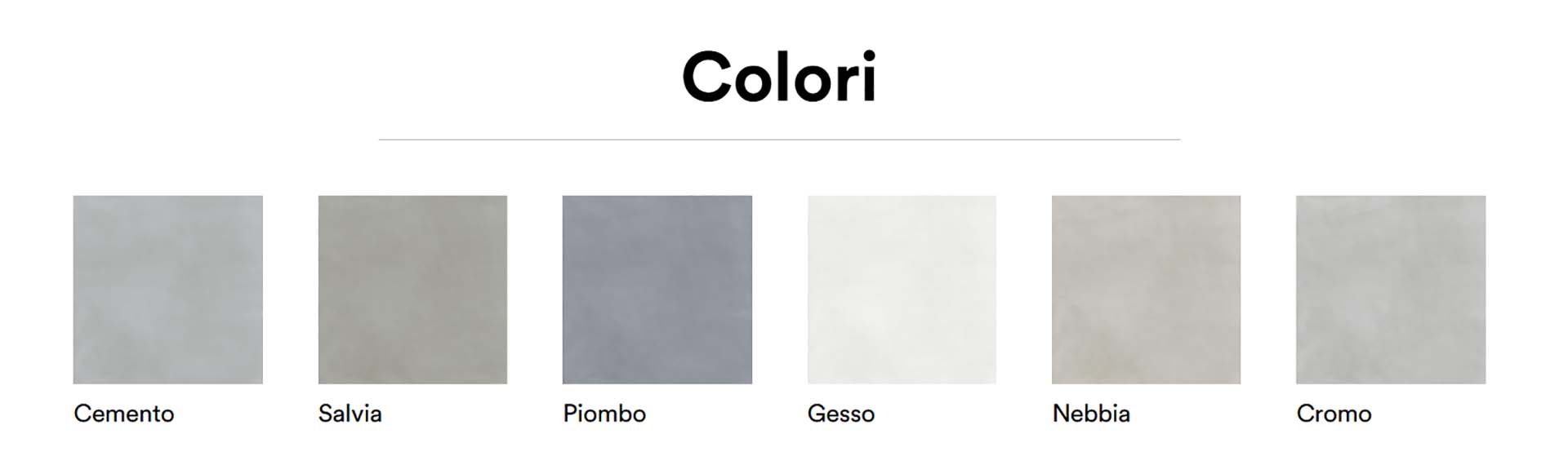 Colori: Gesso, Nebbia, Cromo, Cemento, Salvia, Piombo
