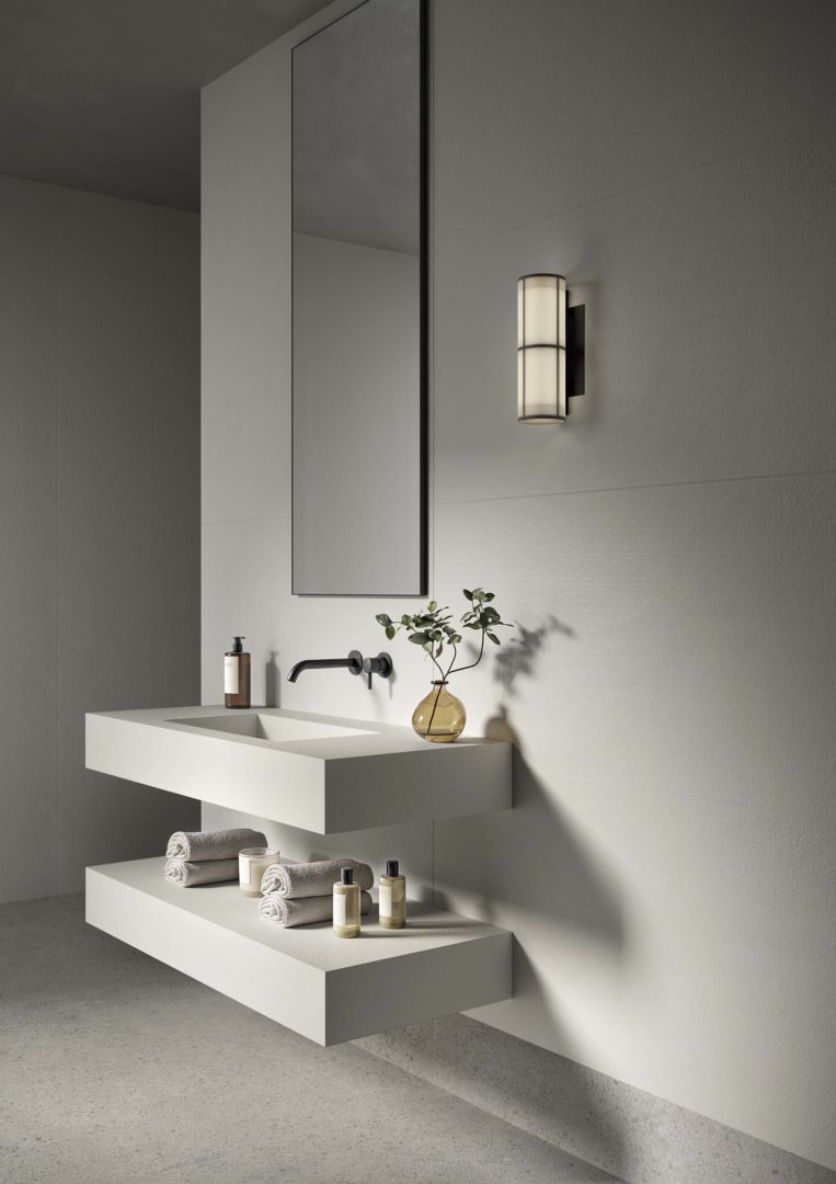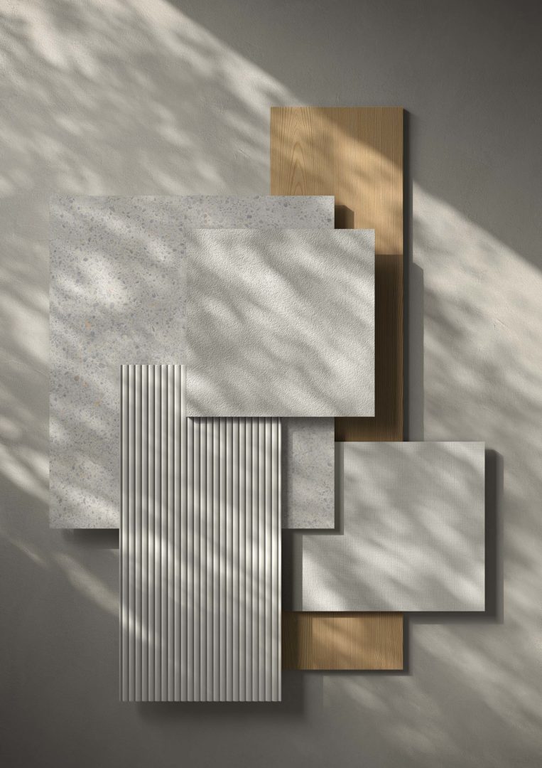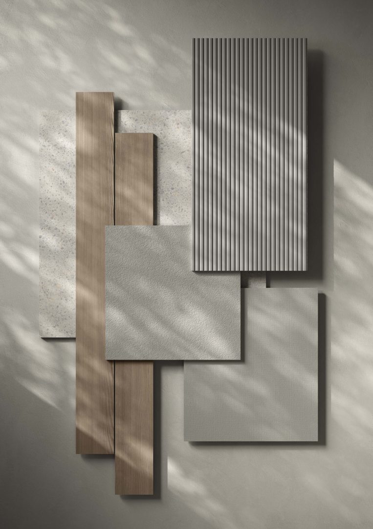 La palette cromatica di Elements spazia dal bianco al tortora, passando per grigio, antracite, nero, beige e sabbia. Tonalità sobrie e avvolgenti che valorizzano ogni stile d’arredo, rendendo ogni ambiente accogliente e funzionale: dai bagni spa-style alle cucine scenografiche, dalle zone giorno di impatto visivo alle camere da letto e agli spazi open air.