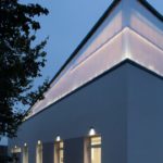 La “lanterna” retroilluminata in policarbonato dona al complesso un carattere simbolico e poetico, trasformando l’edificio in un segno discreto ma riconoscibile nel paesaggio urbano. Un’opera sobria e intelligente.
