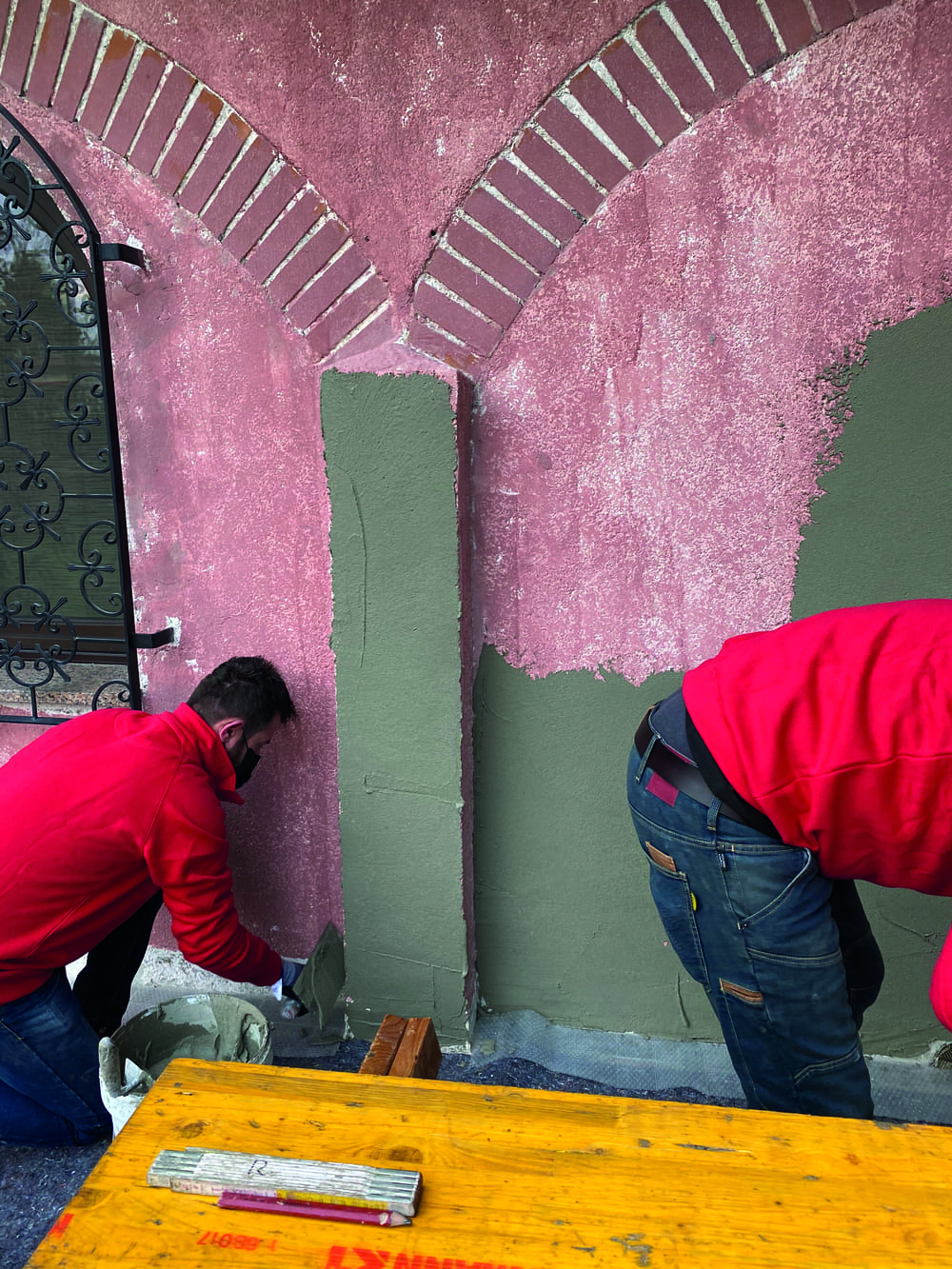 con lo stesso prodotto si provvede alla rasatura con rete Aquafire e successivamente alla finitura.