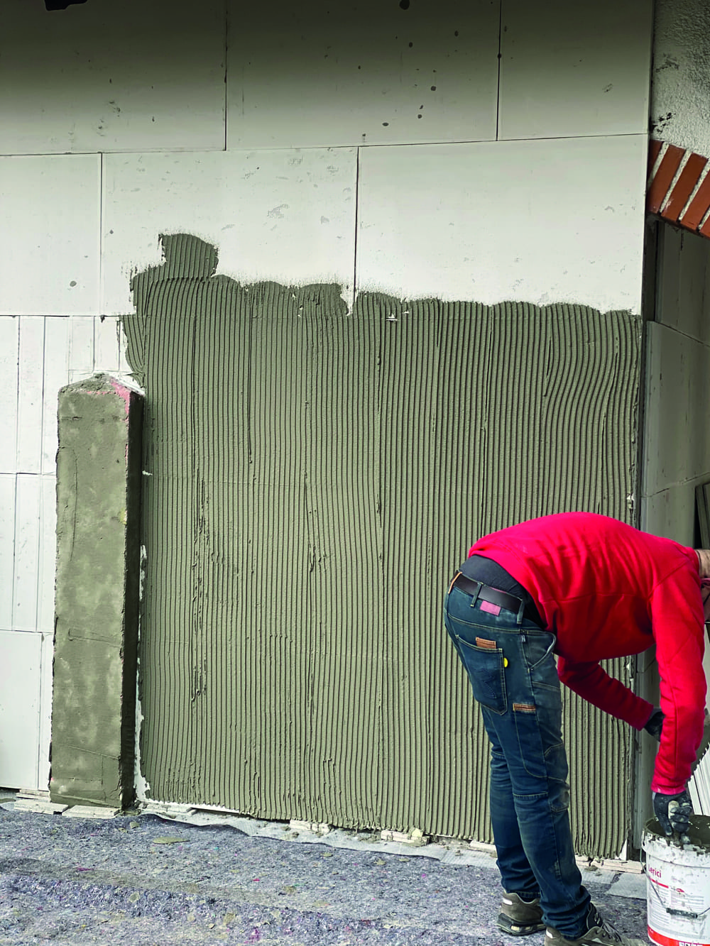Anche il montaggio è estremamente semplificato: il sistema non necessita, infatti, di alcuna tassellatura, ma è montato tramite incollaggio attraverso il collante rasante Aquafire. Poi,