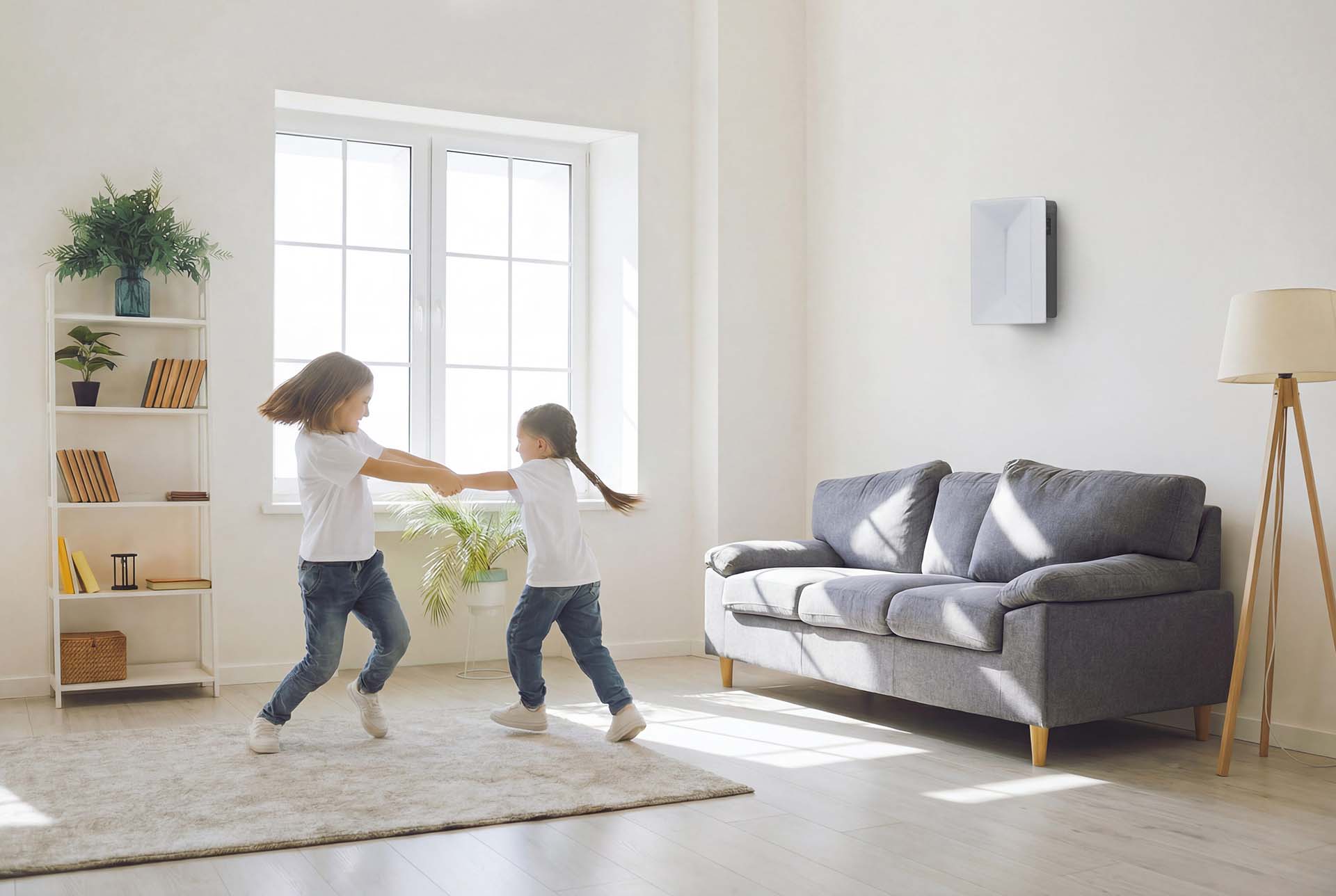 L’unità integra sensori per temperatura esterna, temperatura interna e umidità, consentendo una regolazione intelligente del ricambio d’aria.
